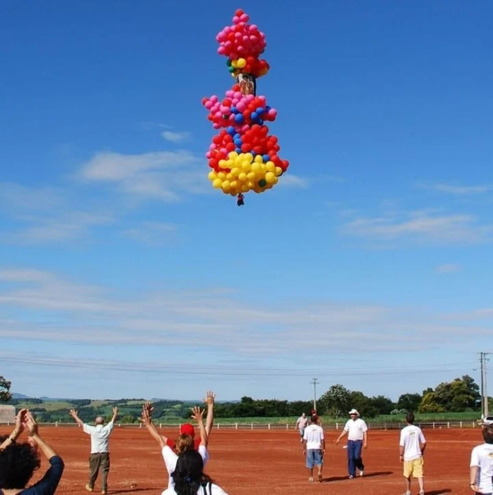 Parece una locura volar con globos inflados con helio, pero él no lo creía así. Y sus vuelos llegaban a buen final. Realizó algunas de estas hazañas, incluida una que terminó en tierra argentina: el 13 de enero de 2008 recorrió en cuatro horas los 110 kilómetros entre Ampere, en el estado de Paraná, Brasil y la ciudad argentina de San Antonio, en Misiones.
